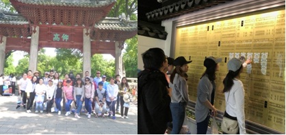 虽然头顶骄阳,青年们个个精神饱满。第二站来到嘉定孔庙。大家学习了嘉定孔庙历史由来、参观了上海中国科举博物馆的陈列展厅。青年们对中国古代科举制度非常感兴趣,不时驻足观看,频频提问。