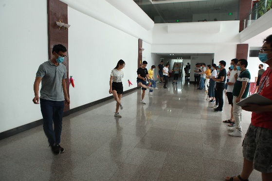 比赛分室内和室外两个赛场,室内项目有踢毽子、平板支撑,室外项目是限时跳绳一分钟。跳绳比赛当天气温较高,参赛人员和裁判员在烈日下挥汗如雨;踢毽子和平板支撑比赛在DSP大楼一层大厅举办,参赛者们提前来到现场热身,观众们也围过来鼓劲打气。科研攻关组的张全研究员参加平板支撑比赛,坚持12分29秒纹丝不动,姿势标准,大家都被他的毅力和努力所折服。曾娟研究员左右脚轮换“花式踢毽子”,观众纷纷拿起手机拍照录像,给紧张的比赛增添了轻松娱乐的气氛。工作组成员全程密切关注参赛者表现,认真记录每个人的比赛成绩。