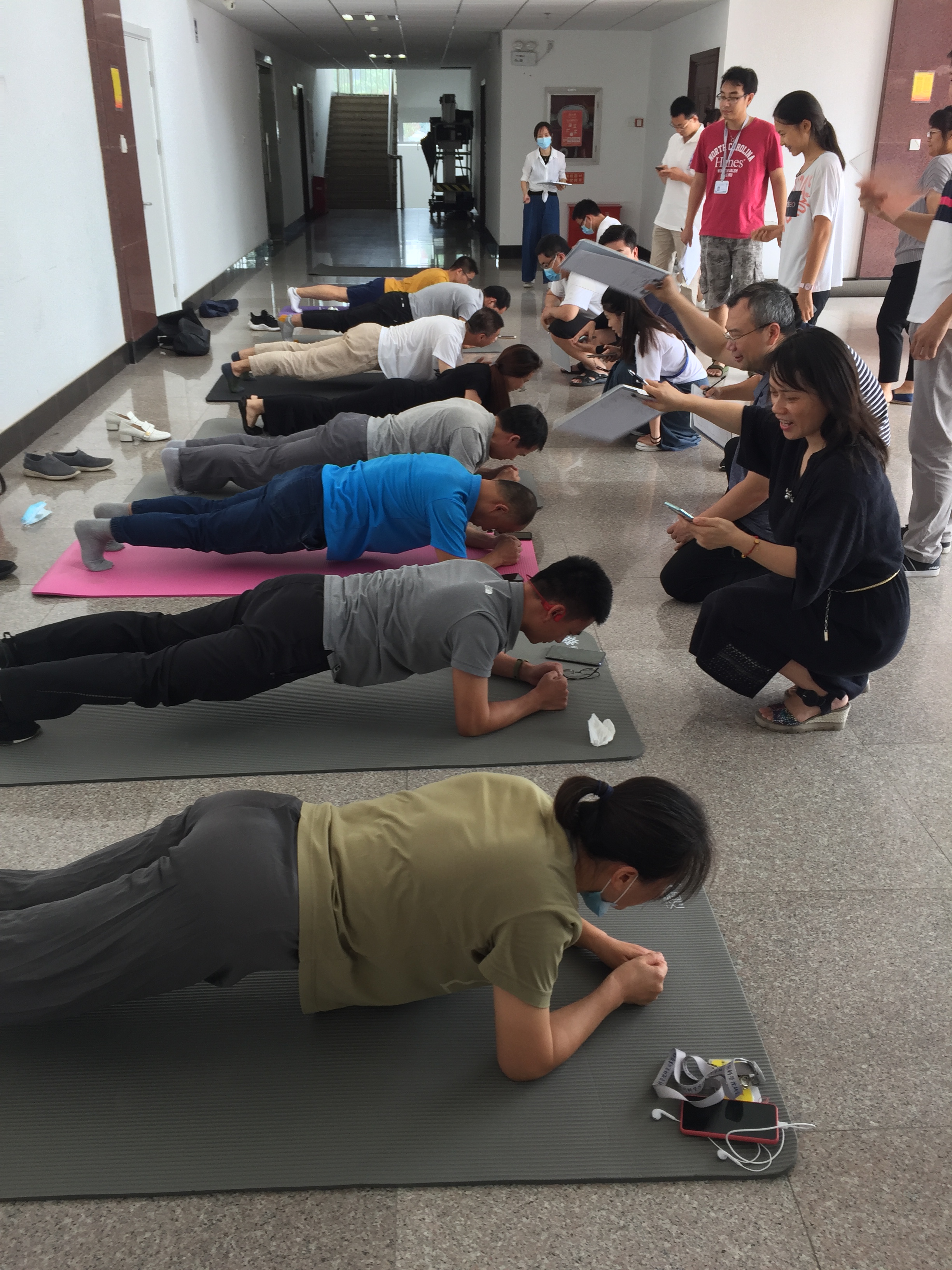 活动开展期间正值全所高温假,各分工会根据本部门工作特点,以现场和线上相结合的形式,组织了形式多样的所内选拔赛。所领导带头参赛,广大干部职工踊跃参与,其中机关分工会参与率达到了82.6%。休假、出差人员自主安排时间和地点,如湖海试人员就地取材,用白纱手套等物品当垫子,在船上的安全地区做平板支撑,通过视频和照片的方式发到微信群或小程序灵活参赛。所内职工利用工作间隙在办公室、走廊等场所参赛,大家互相加油和鼓励,全所上下投入到了浓浓的健身活动气氛之中。