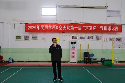 开幕式上,声学所工会主席林伟军和空天院常务主席孙文新分别代表声学所工会和空天院工会致辞,双方均表示通过气排球运动可加强两个单位之间的交流。随后,运动员代表和裁判员代表分别宣誓。