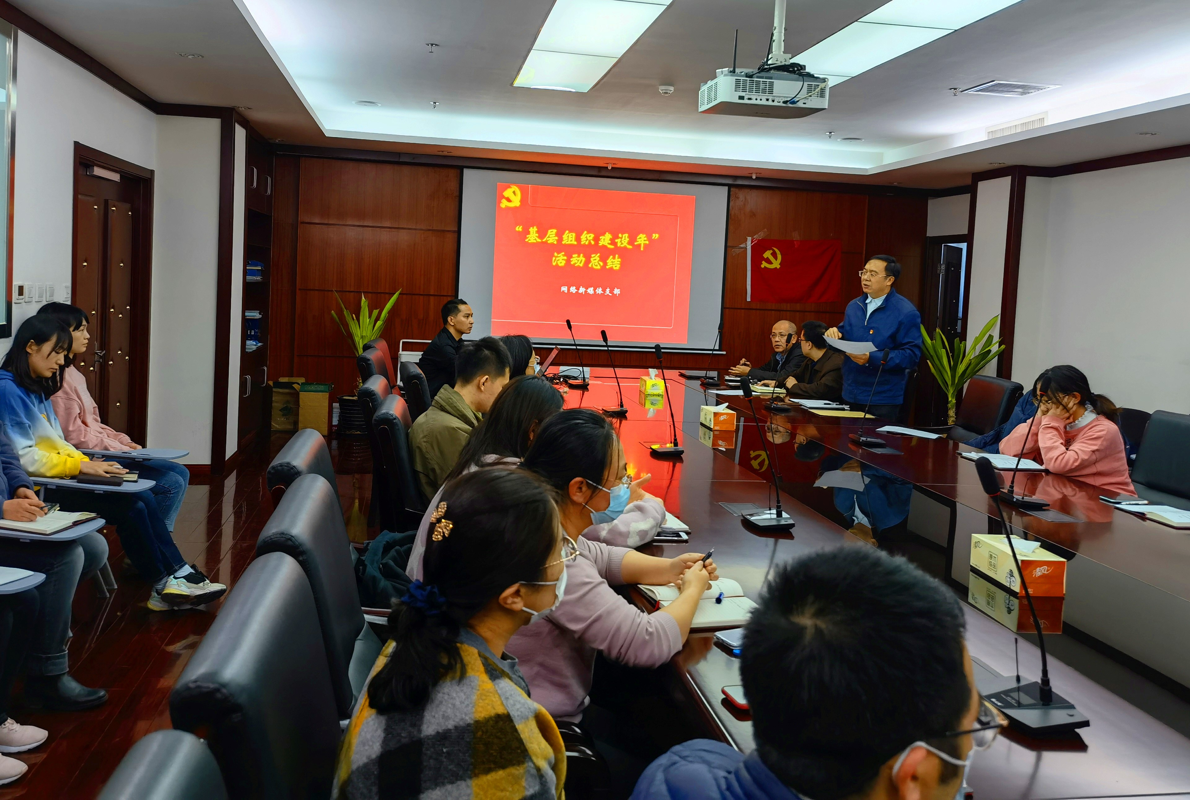 吴京洪向大家汇报了本支部“基层组织建设年”活动开展情况,详细介绍了前期支部所做的工作和取得的成效。刘宏伟对网络新媒体党支部在“基层组织建设年”活动中所做的工作进行了点评。现场发放了民主测评表,3位党外人士也参与了对支部工作的评议。