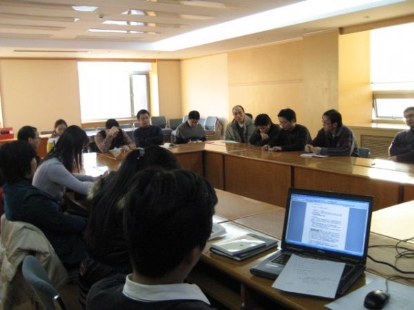 接着,全体党员在自学十七大报告的基础上,对学习感想进行了充分的交流。池毓换老师谈到十七大报告像百科全书,作出了了一系列影响深远的重大理论创新,首次提出“创造条件让更多群众拥有财产性收入”的说法等,都是非常新颖的。付强老师谈到十七大报告将创新工作提高到一个很高的高度,说明了党中央对这个方向的重视,也给了我们很大的激励和鞭策,鼓励我们在科研工作中做出更大的成绩。张建平老师也阐述了对科学发展观的理解,告诉我们在科研工作中不要走回头路,要一个目标接着一个目标地努力,最终会使国民生活越来越好。最后,支部书记赵庆卫老师,就十七大报告的学习谈了他自己的感想。在报告中,赵老师首先介绍了关于“中国特色社会主义”、“科学发展观”和“构建和谐社会”等议题提出的背景,并且将这些理论实际结合到我实验室的建设发展中来。最后指出,我们要“居安思危”,在科研经费充足,环境优越的条件下,也要时刻认清危机,提高自身的科研能力,发扬主动进取的精神,增强使命感和责任感。