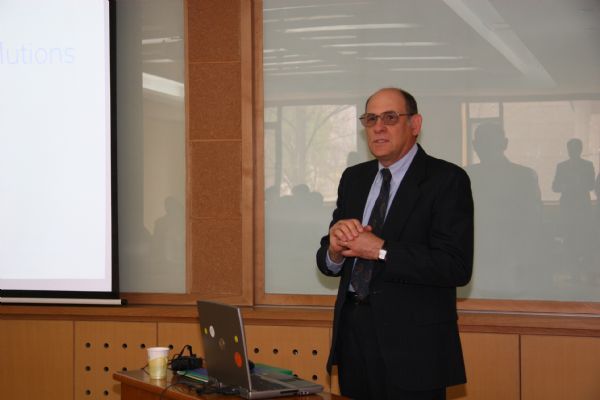 2006年4月21日,GE公司关于PowerPC系统的专家Falasco先生和GE Fanuc嵌入式系统的国际销售部经理Van Nostrand先生等一行人员,应邀来到声学所,就未来信号处理板级系统的发展进行了技术交流,并面向全所作了以“基于PowerPC的雷达声纳解决方案”为题的学术报告。