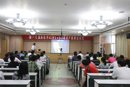 赠送仪式结束后,在王秀明主任的主持下,李宁教授作了题为“新一代测井处理解释软件研发进展”的学术报告。李教授首先生动地描述了测井技术在国外和中国的发展历史,对各种测井方法和处理解释技术分别做了简述。随后他详细叙述了由勘探院开发的两代国产测井软件研发历程,包括迄今仍被多家油田企业广泛使用的第一代软件CIFSUN、以及目前在技术上处于国际领先地位的第三代新型软件CIFLog;将CIFLog的性能参数和软件包数量与国外流行的GeoFrame等软件进行了具体的对比,着重对CIFLog采用的新技术进行了说明,并结合各种实例对系统的应用进行了详细讲解。