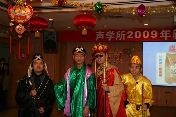 1月16日下午,声学所在DSP四层多功能厅成功举办了隆重而盛大的2009年新春团拜会,精彩的节目、趣味的游戏、丰富的礼品,精彩纷呈,令人目不暇接,多功能厅处处弥漫着欢声笑语,沉浸在节日的喜庆氛围中。声学所副所长张春华、潘锋,副书记王小民,所长助理黄正、颜永红,职代会主席倪宏等领导出席了团拜会。