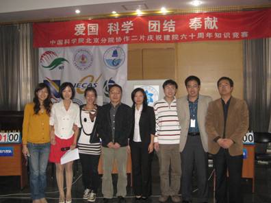 2009年10月29日下午2点,由中国科学院北京分院协作二片团委主办的“庆祝中国科学院建院六十周年知识竞赛”在力学所小礼堂隆重举行。此次活动由声学所团委、理化所团委、电工所团委、化学所团委、力学所团委承办,在各所领导的高度重视和得力组织下,顺利、有序、热烈的开展。本次知识竞赛以“爱国、科学、团结、奉献”为主题,以增加协作二片师生的爱国情怀与交流,增强科研创新凝聚力和战斗力,营造健康、向上、和谐的研究文化氛围为目的,立意鲜明,意义深远。声学所党委副书记、副所长倪宏,办公室副主任发强出席了这次活动。声学所参赛队由团委书记张云鹏带队,三位参赛选手准备充分,严谨认真,精神饱满,他们在比赛中团结协作,机敏果断,展现了我所教职工及同学良好的精神风貌,最终在众所中脱颖而出,取得了三等奖的好成绩。