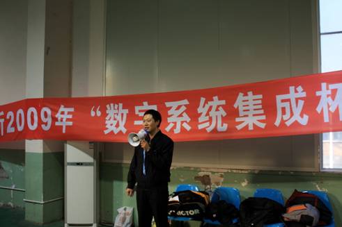 九点整,“数字系统集成杯”羽毛球比赛正式拉开帷幕。开幕式由团委书记张云鹏主持,倪副所长和王东辉主任进行了言简意赅、热情洋溢的赛前动员。