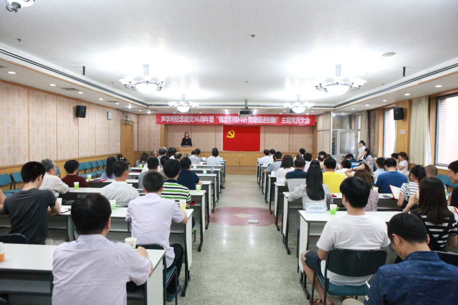 2017年7月3日下午,声学所隆重举行纪念建党96周年暨“信念引领科研 党建促进创新”党员大会。党委书记张春华作了题为《坚定理想信念,引领科技事业创新发展》的主题报告。所党委委员、纪委委员、支部书记等百余名在职、学生和退休党员参加了大会。