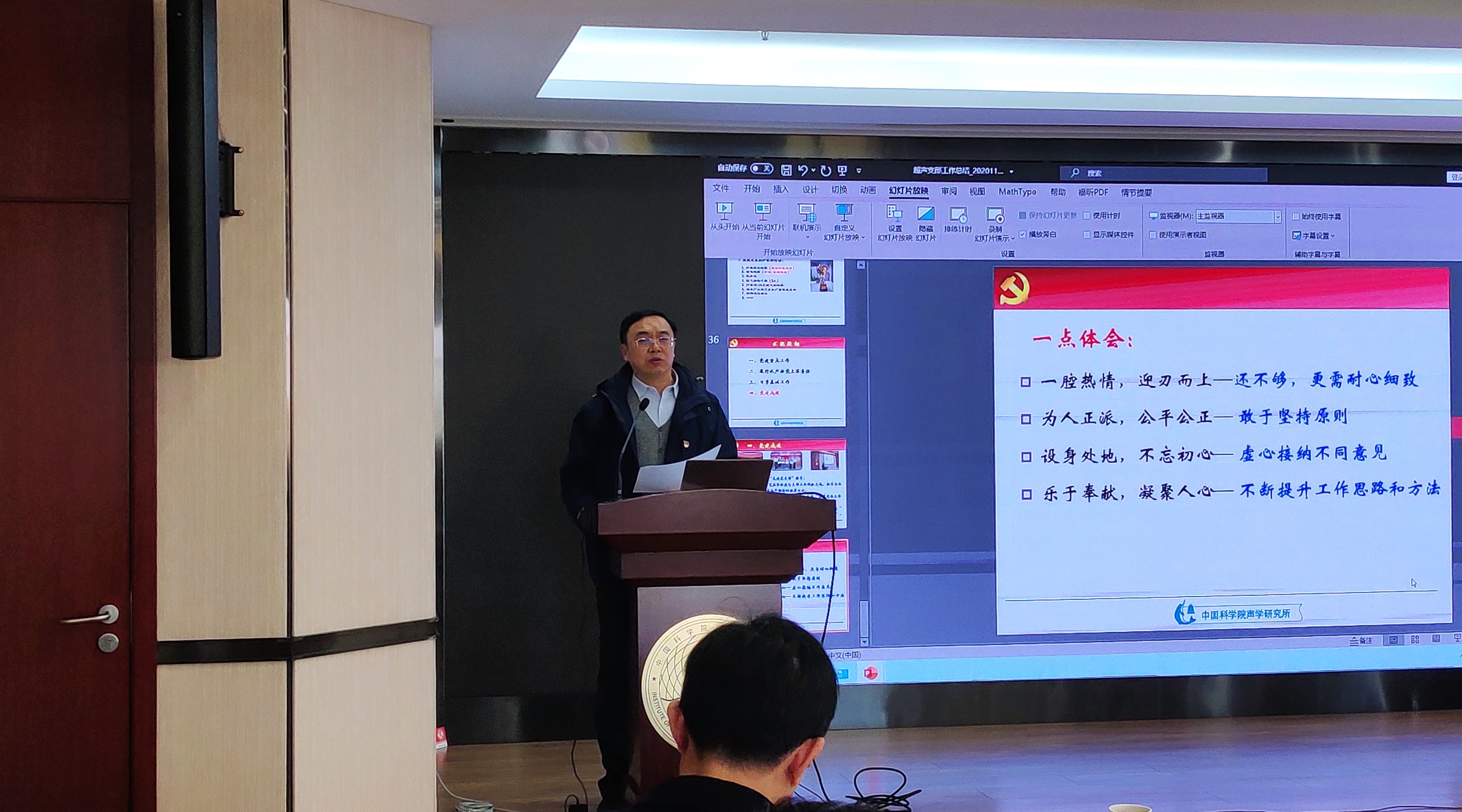 1124日,超声技术党支部在DSP多功能厅召开线上和线下党员大会,集中学习党的十九届五中全会精神。所党委副书记、纪委书记李浩然,所党委委员、党委办公室主任刘宏伟参加了此次活动并指导工作。党支部书记陈德华主持会议并带领广大党员学习党的十九届五中全会精神。
