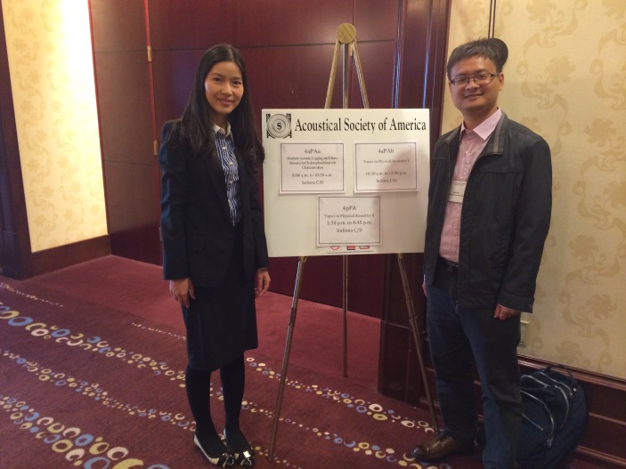 第168届美国声学学会会议(168th Meeting of the Acoustical Society of America)于2014年10月27日至31日在美国印第安纳州的州首府印第安纳波利斯举行。声学所超声物理与探测实验室何晓副研究员和周吟秋博士生应邀参加了此次会议并做了会议报告。
