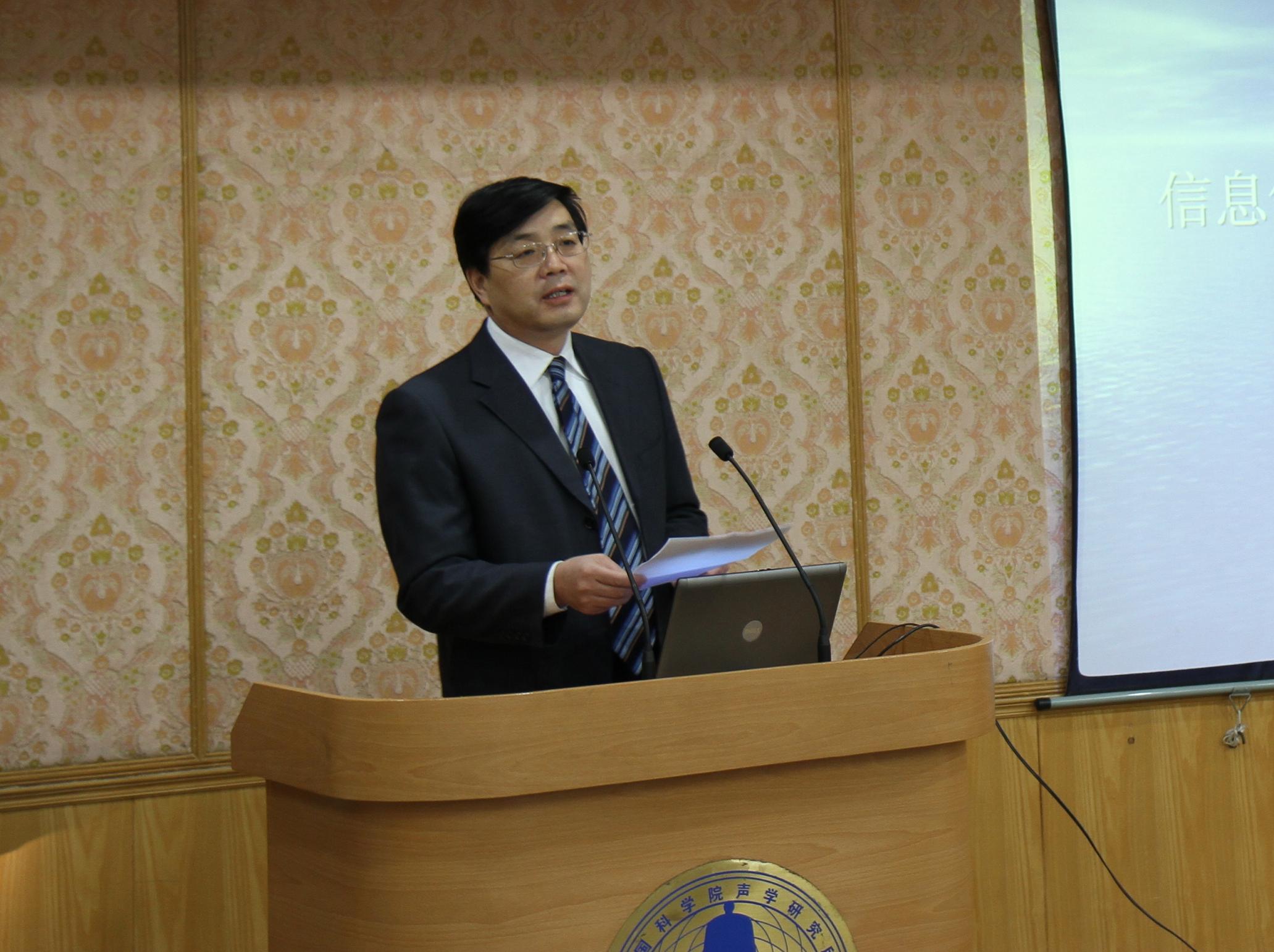 会议首先由声学所所长王小民致辞。王所长代表声学所领导班子和全体师生向首届“信息领域前沿与发展研究生学术论坛”的胜利召开表示祝贺,并向来自各高校和其他院所的研究生表示热烈的欢迎。王所长指出本届研究生学术论坛通过加强研究生的学术交流,使同学们拓展学术的视野,激发学术的热情,启迪学术的思维,提高学术创新的能力。研究生承担科技创新的责任,肩负着国家繁荣昌盛的使命,王所长希望大家能树鸿鹄之志,练卓越之才,修高尚之德,提升自己高屋建瓴的解题能力,运筹帷幄的写作能力,逻辑清晰的表达能力,以及亲自动手的创造能力,以智慧与汗水、勤奋与才华、魅力与人格,点燃青春,实现梦想。最后王所长代表声学所领导班子和全体师生重点感谢了中国科学院研究生院教育基金会的支持和为本届论坛辛勤工作的老师和同学,并预祝论坛顺利举办。