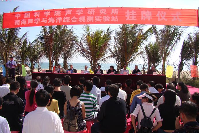 上午10:30分,在南海碧海蓝天的映衬下,在五彩缤纷旗帜的装扮下,在各级领导和专家的期盼中,在参加挂牌仪式来宾的祝福中,中国科学院声学研究所“南海声学与海洋综合观测实验站”挂牌仪式正式开始。
