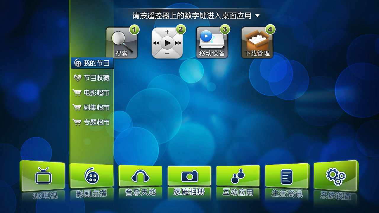 1)联动服务:通过手机、PAD3Nbox绑定后,根据业务需求可以实现多屏显示内容的联动,目前的应用场景是:当用户在手机或PAD上选中影片播放时:电视作为大屏幕进行播放,在手机和PAD上显示对应的相关影片和控制条,播放的同时可以进行影片的浏览和进度的控制。同时联动的还有当用户在机顶盒端选择搜索页面时,手机或PAD端联动出现搜索页面帮助用户在手机端方便的完成搜索选片的动作。