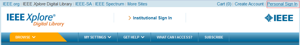 3. 点击下图红色框内的“Personal Sign In”,登陆 IEEE 个人账号(与机构无关,读者可自己注册);