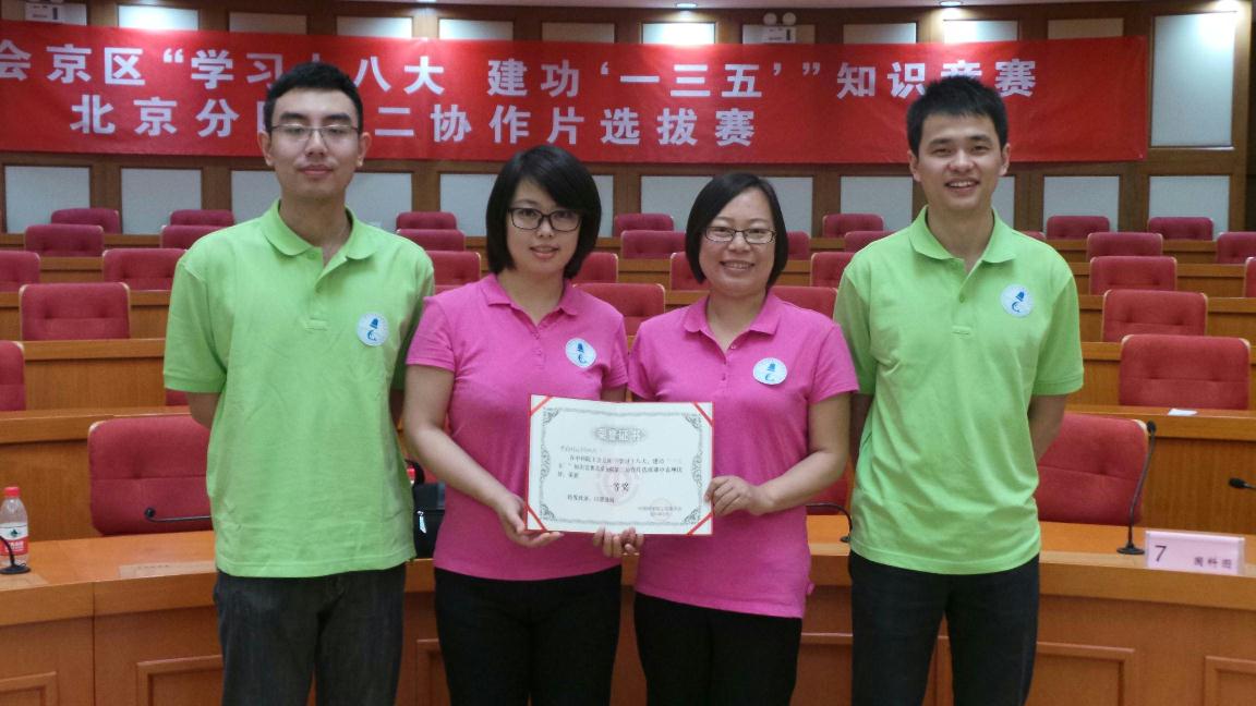 为庆祝十八大的成功召开,切实响应院党委关于学习十八大精神的号召。2013年5月24日上午,中科院工会京区“学习十八大,建功‘一三五’”知识竞赛北京分院第二协作片选拔赛在科技会堂举行,共有10家单位组队参加了比赛。声学所代表队凭借出色的发挥以230分的总成绩获得了并列第一名,将与国家图书馆代表队共同代表北京分院参加全院十八大党史知识竞赛。