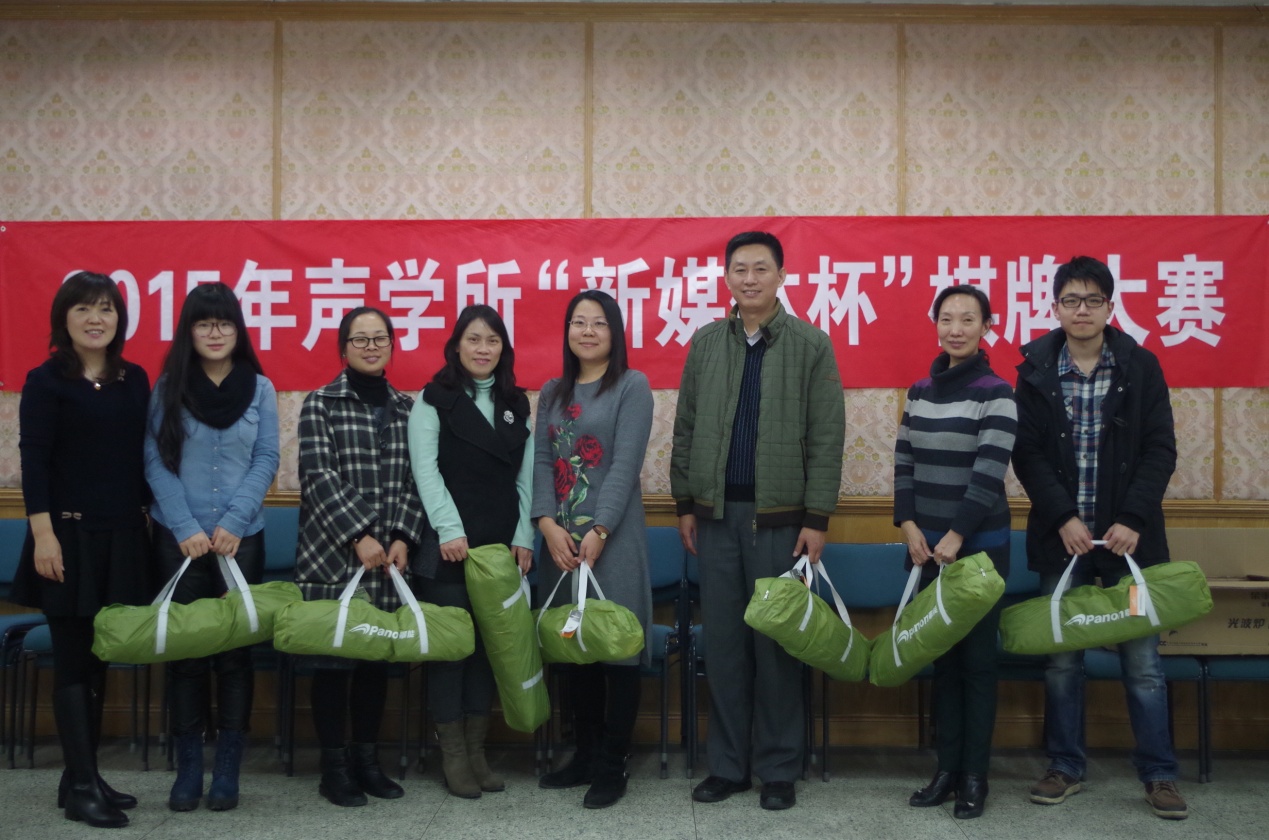 2015年12月14日,经过七天的激烈角逐,声学所2015年“新媒体杯”棋牌大赛在声学所DSP大楼四楼多功能厅圆满落幕。声学所党委书记张春华、所工会常务副主席周秀霞以及对本次棋牌大赛给予赞助支持的国家网络新媒体技术研究中心副主任邓浩江出席了闭幕式。本次棋牌大赛全所职工及学生积极参与,同时还受到了所领导的肯定和支持。张春华书记和倪宏副所长也代表机关参加了比赛,并一路挺进决赛。