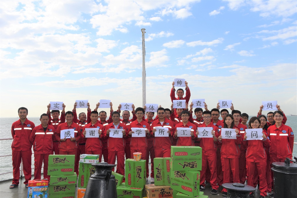 在实验期间,声学所党委和工会多次询问出海实验情况,了解调查队员生活所需。参加此次试验的调查人员共49人,其中声学所17人,由声场声信息重点实验室李整林研究员担任首席科学家。实验期间海况总体良好,调查队员日夜兼程,连日苦干。声学所工会的慰问活动犹如及时雨一般,不仅送来了调查队员海上生活所需的食品和药品,更是把组织的关怀和温暖,送到每一位调查队员的心中。