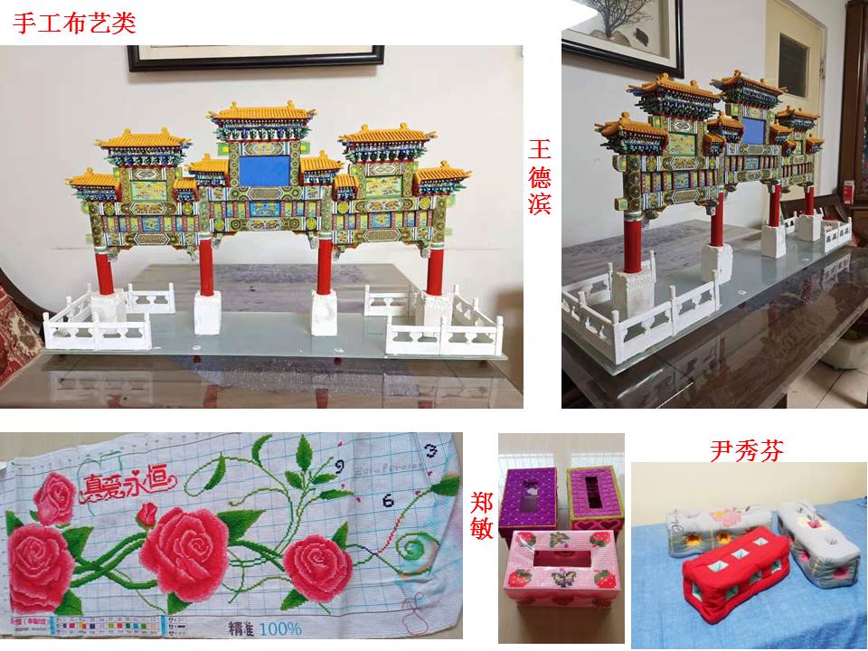 李渭红、彭瑞平、缪家駖、尹秀芬、郑敏老师通过刺绣和手工带来了布艺作品。