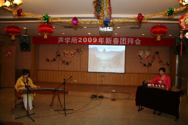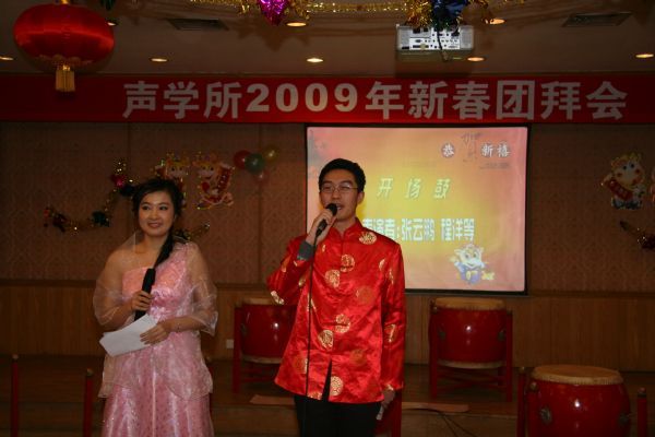 1月16日下午,声学所在DSP四层多功能厅成功举办了隆重而盛大的2009年新春团拜会,精彩的节目、趣味的游戏、丰富的礼品,精彩纷呈,令人目不暇接,多功能厅处处弥漫着欢声笑语,沉浸在节日的喜庆氛围中。声学所副所长张春华、潘锋,副书记王小民,所长助理黄正、颜永红,职代会主席倪宏等领导出席了团拜会。