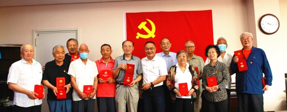 倪宏强调,在建党100周年之际,党中央首次颁发“光荣在党50年”纪念章,充分彰显了以习近平同志为核心的党中央对老党员的尊重、关心和爱护,也将进一步激励年轻党员不忘初心、奋勇前行。声学所的广大老党员、老同志是声学所发展的见证者、实践者、奉献者,声学所不会忘记每一位老同志的奉献。希望全所党员、职工弘扬科学家精神、传承红色血脉,不负韶华、接续奋斗。希望老党员、老同志继续关心、支持所里各项工作。衷心祝愿各位老党员身体健康、生活愉快。