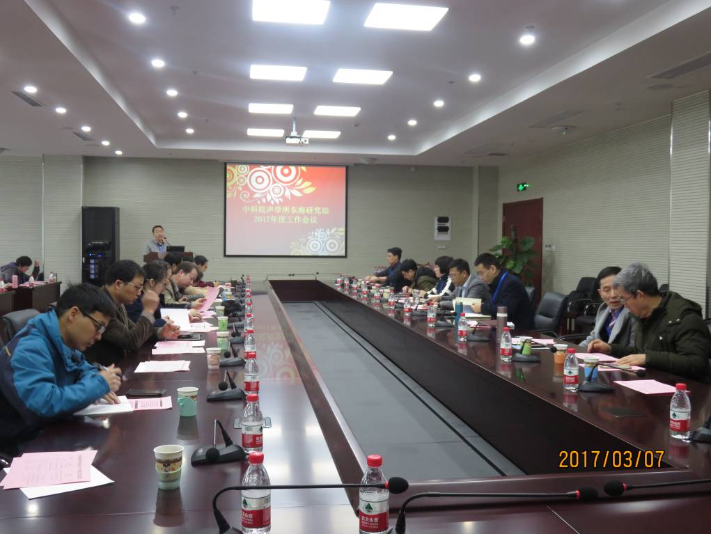 2017年3月7日,东海站召开2017年度工作会议,站党政领导班子、各科室负责人、部分课题组负责人、党支部书记和职工大会主席团等30多名职工参加了会议,新安江试验场负责人和嘉善电声研发中心负责人也参加了会议。会议由副站长张伟才主持。