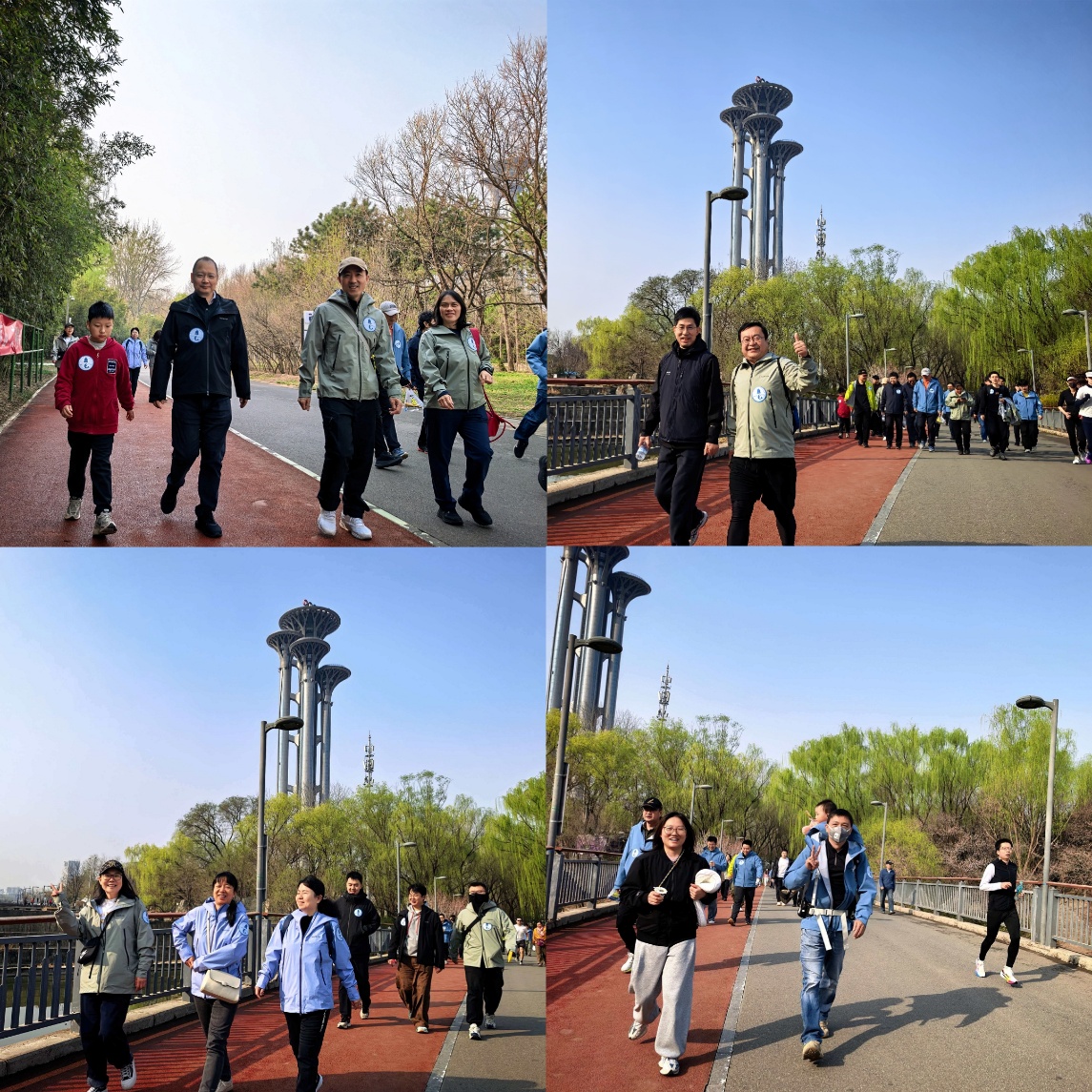 奥林匹克森林公园春草初萌,柳枝吐绿。简短的动员和热身活动后,大家沿着步道阔步前行。5公里行程中,大家结伴而行,有人交流工作与生活,也有人放慢脚步拍照留念。所领导们全程参与,与干部职工并肩同行,亲切交流,现场气氛热烈而融洽。
