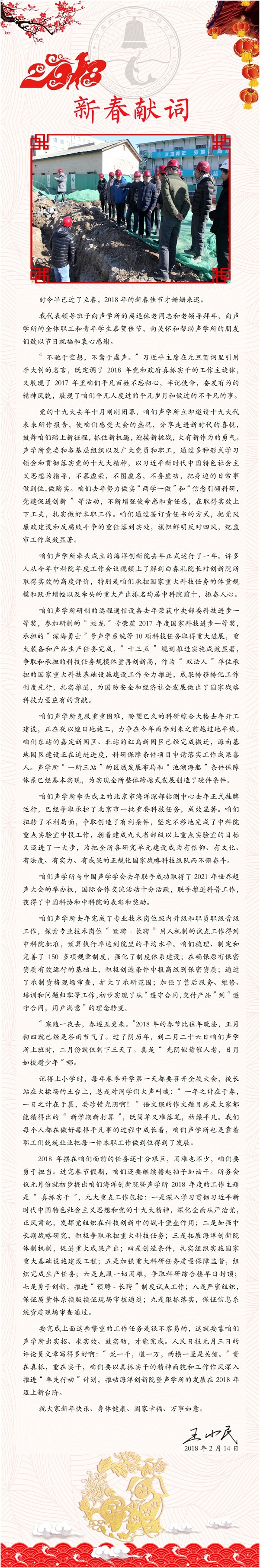 真抓实干——中国科学院海洋信息技术创新研究院暨声学研究所2018年度工作会议召开